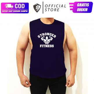 Singlet Lowkat Fitnes Pria Stronger Binaraga Stretch