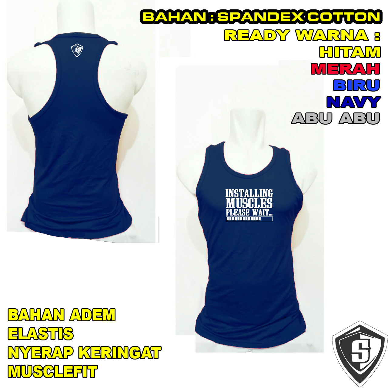 Baju Singlet fitnes gym Installing muscles please wait Bodyfit Produsen Tangtop Lari Elastis Halus No 087884599359 COD an Nganjuk
