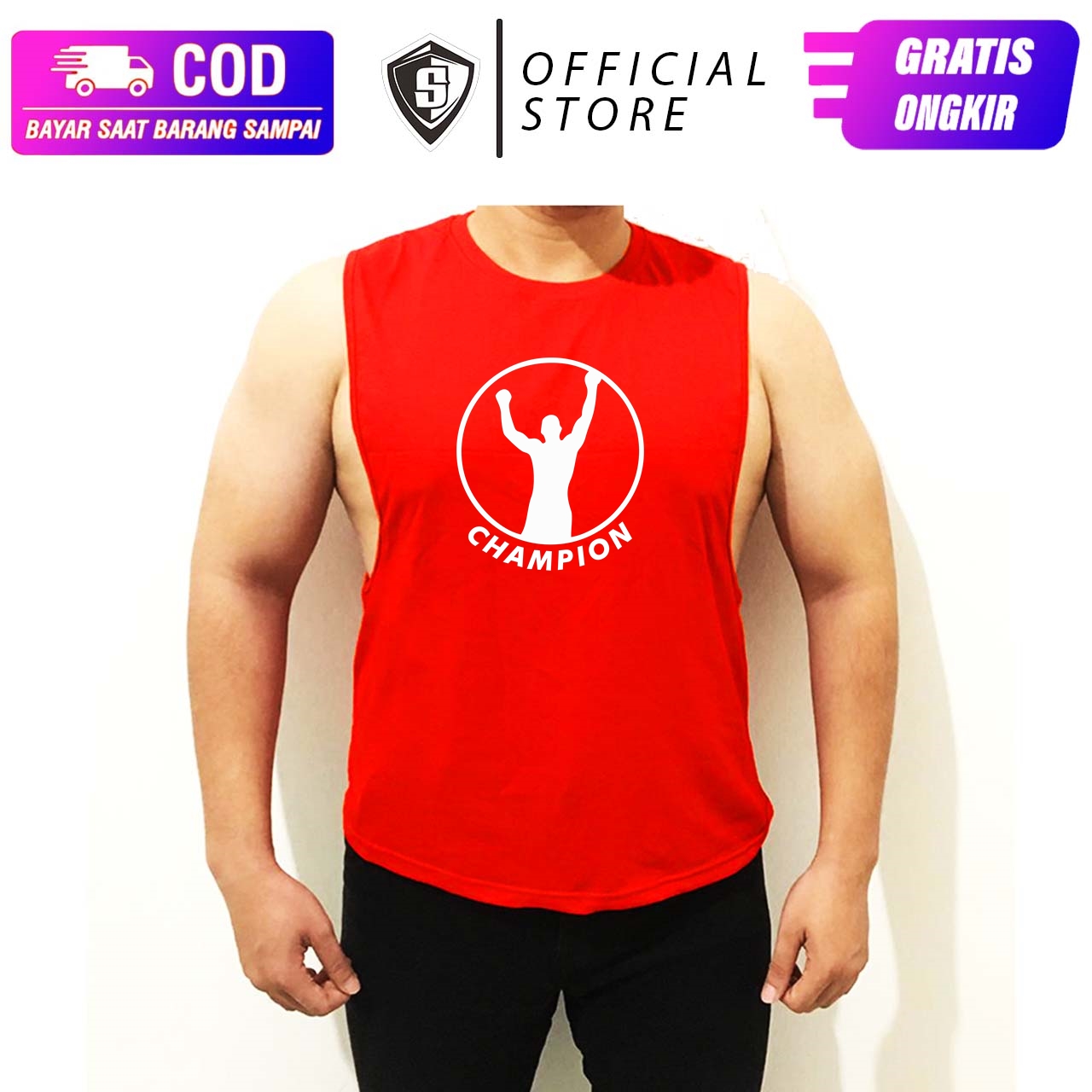 Baju Singlet Lowcut Fitness Muscle tee Juara Tinju Cotton CombedWA 087884599359