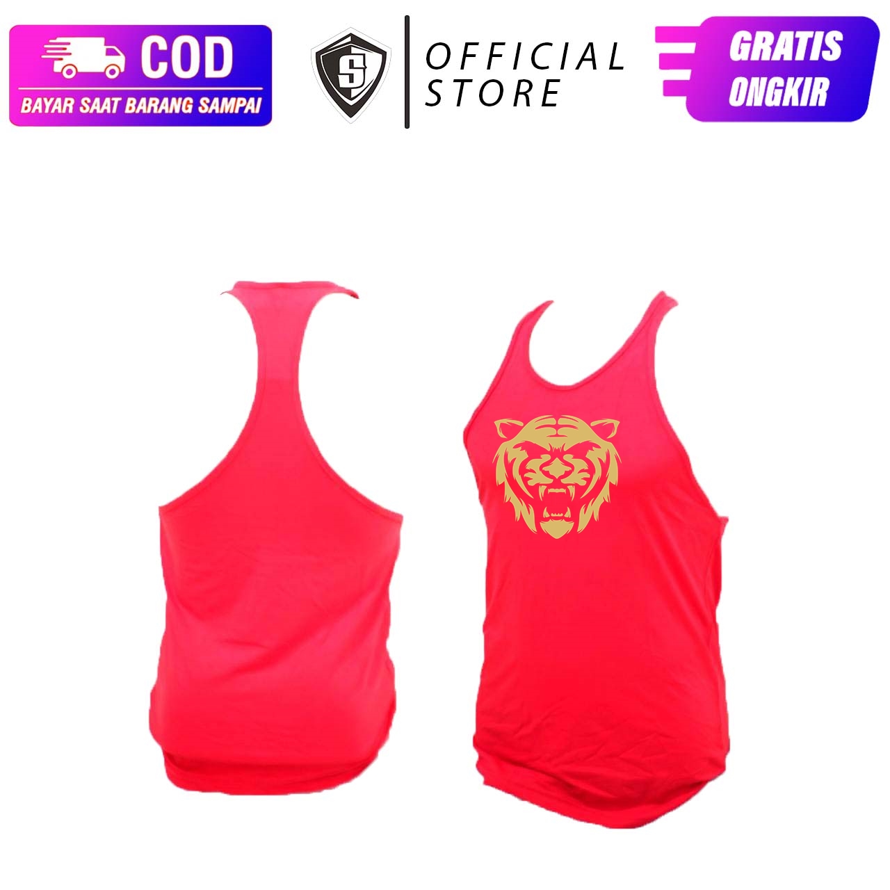 Baju Singlet Workout Fitnes Muscle tee Golden Tiger Harimau AdemWA 087884599359