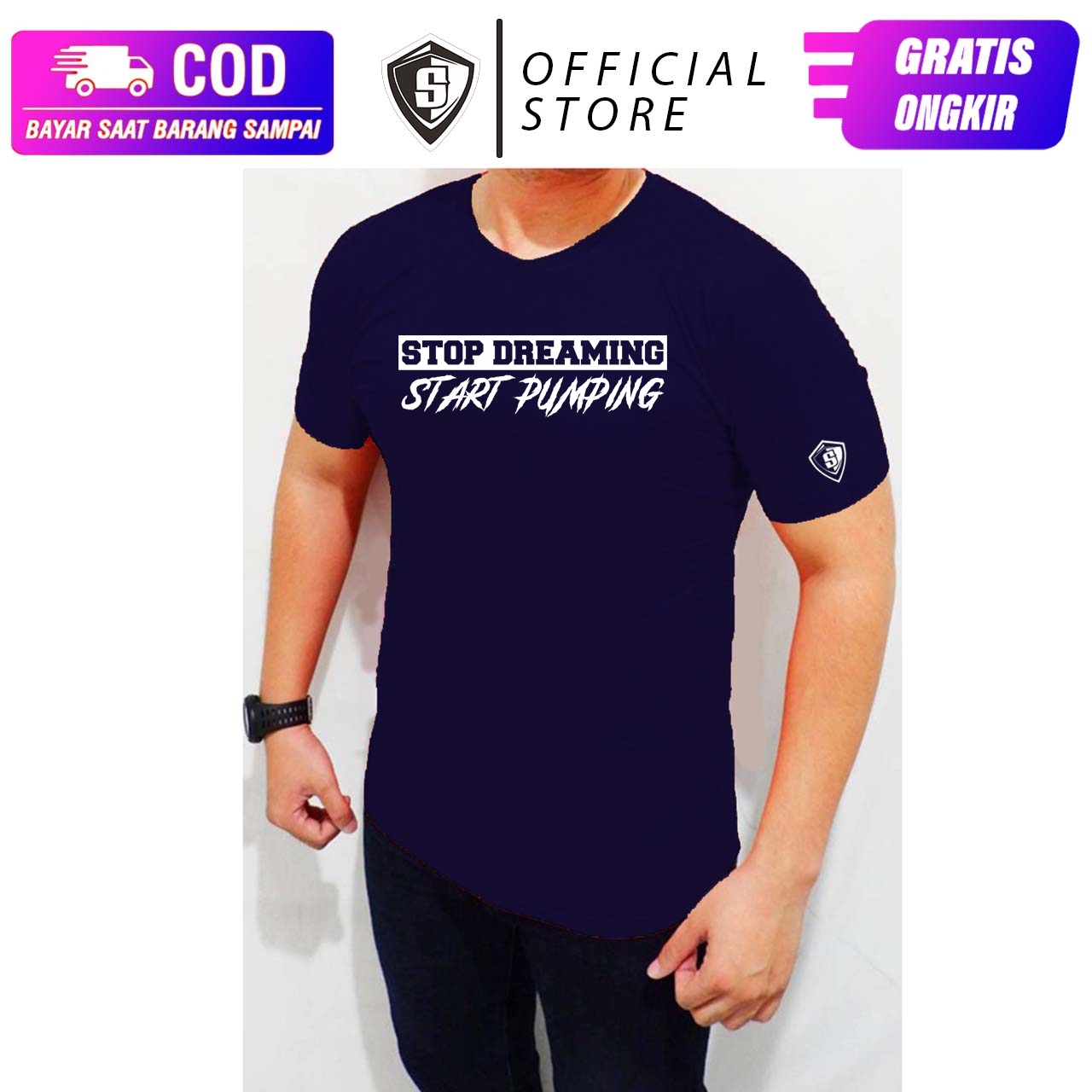 Kaos Fitness Pria Stop Dreaming Start Pumping StretchWA 087884599359