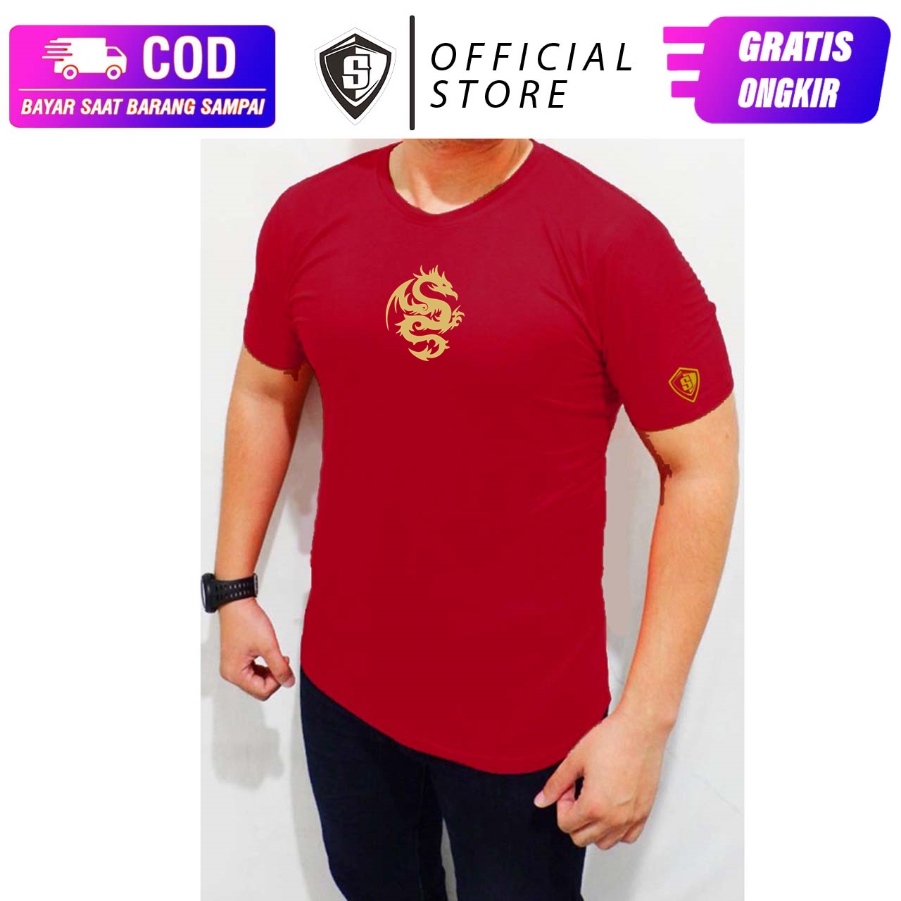 Kaos Workout Fitnes Pria Dragon Gold HalusWA 087884599359