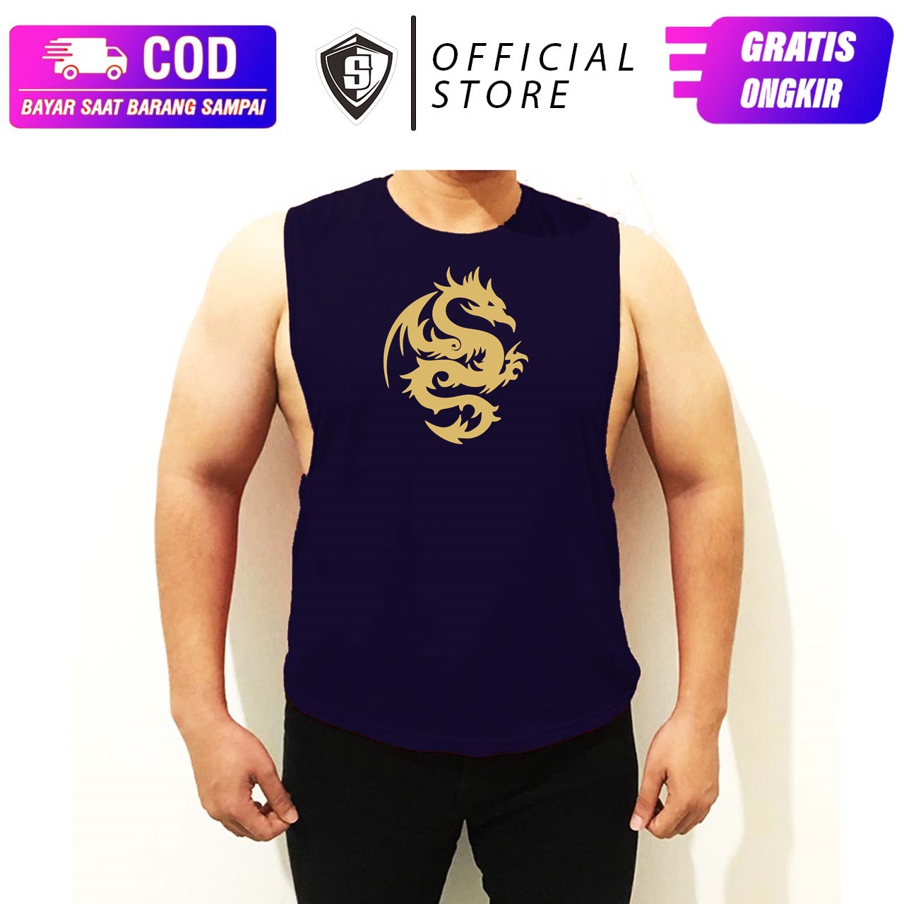 Singlet Deepcut Gym Fitness Pria Dragon Naga StretchWA 087884599359