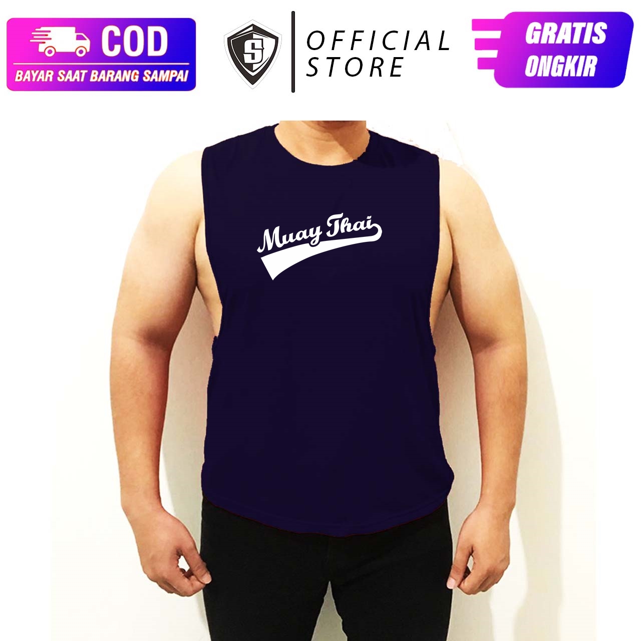 Singlet Low cut Fitnes Gym Pria Muay Thai Cotton CombedWA 087884599359