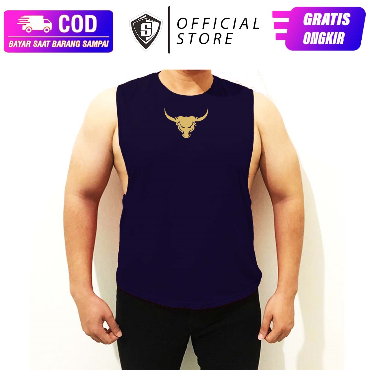 Singlet Lowcut Fitness Gym Cowok Banteng Gold Cotton CombedWA 087884599359
