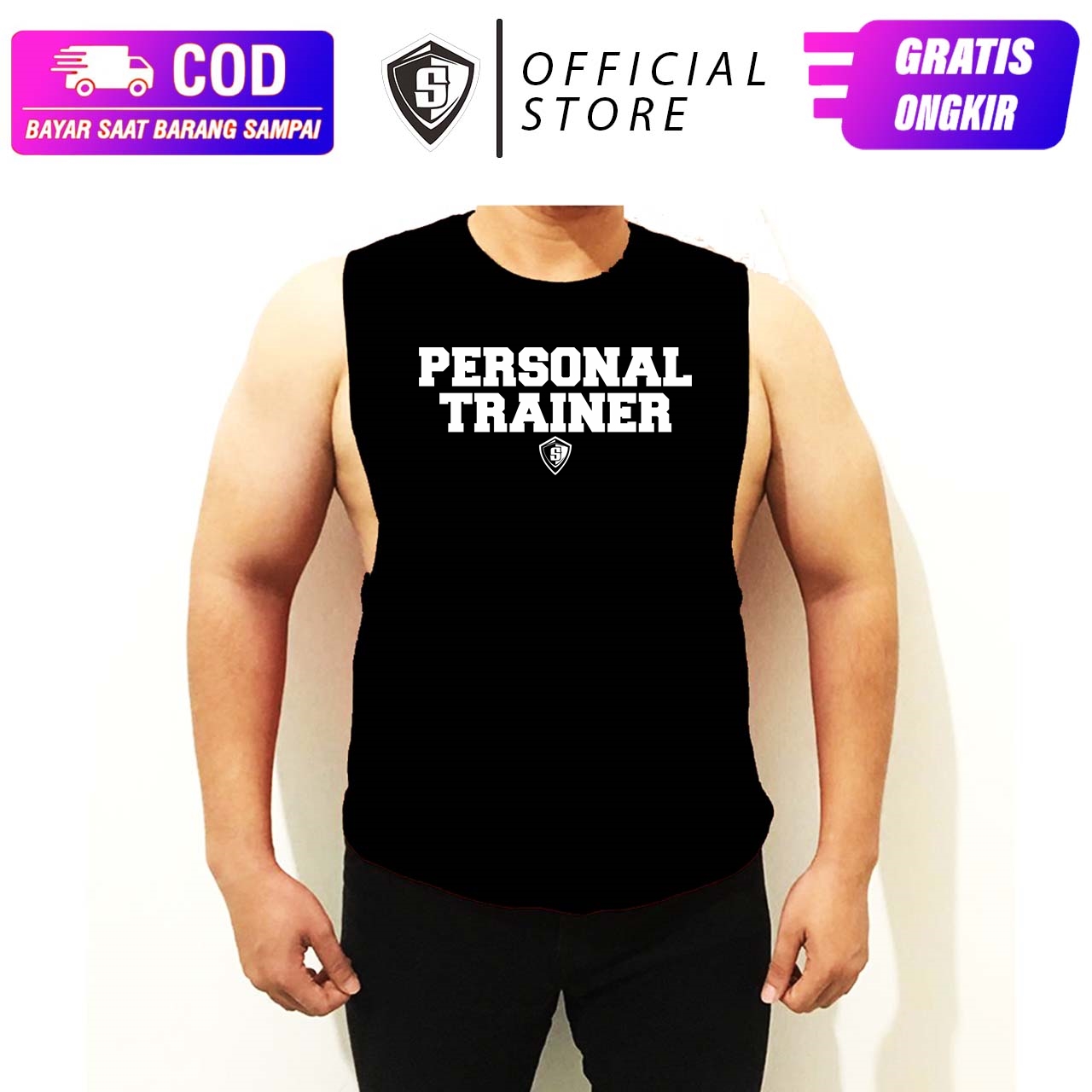 Singlet Lowcut Gym Fitness Bodyfit Personal Trainer Pelatih KatunWA 087884599359
