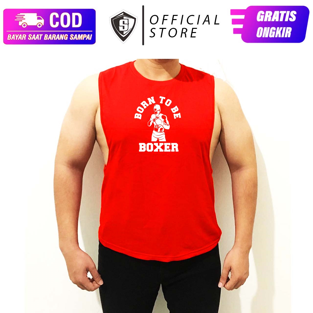 Singlet Lowcut Workout Fitnes Musclefit Born To Be Boxer Tinju ElastisWA 087884599359