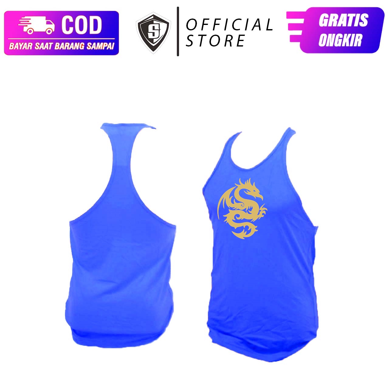 Tangtop Workout Pria Bodyfit Gold dragon StretchWA 087884599359